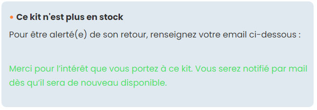 - Title "This kit is no longer in stock": Single Product > Main > Single Product Main Stock Alert Pack Title
