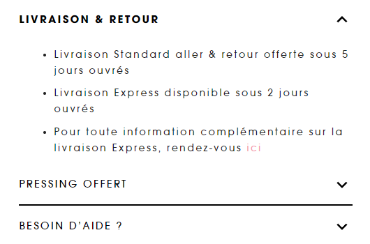 - Size, color, and font determined during the CSS styling carried out by the Lizee developers.